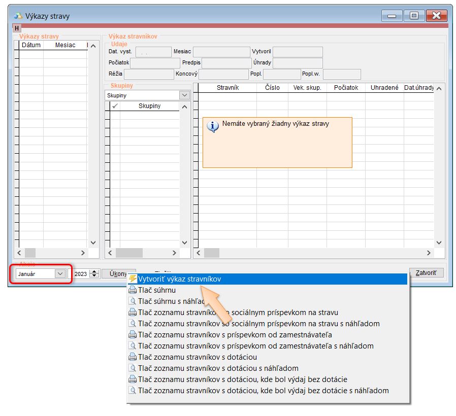 - Prihlásiť stravníkov na stravu na aktuálny mesiac.
