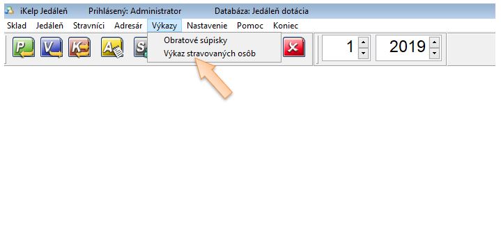 - Zo zoznamu vyberte možnosť Výkaz stravovaných osôb.