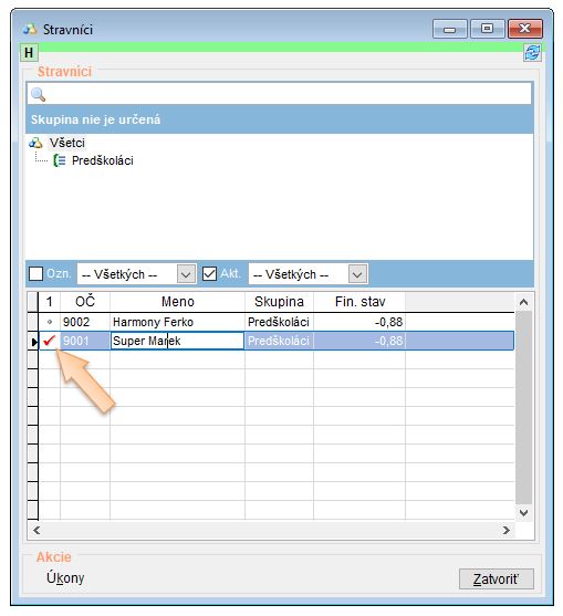 - Otvorte si zoznam stravníkov. (Tlačidlo S na nástrojovej lište.)