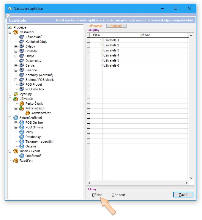Skupinu uživatelů je vhodné vytvořit, jestliže budete mít více uživatelů, kterým je potřebné nastavit stejná práva v aplikaci. (Jsou to např. číšníci, pokladníci apod.) Následně se práva nenastavují pro konkrétního uživatele, ale pro skupinu uživatelů. Automaticky se tak aplikují všem z dané skupiny. Rovněž je tak zjednodušené vytváření nových uživatelů, kdy se nastaví jeho přihlašovací údaje a zařazením do skupiny se mu aplikují všechna potřebná práva.
