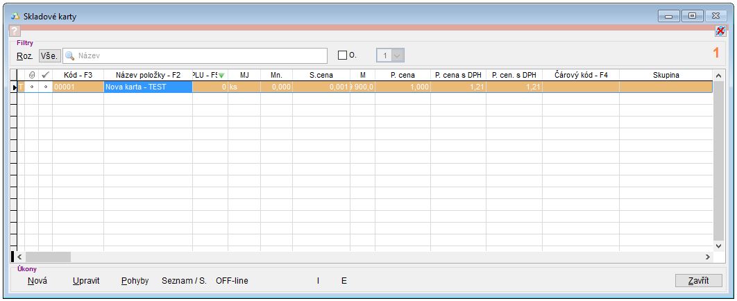 Aby bylo možné v aplikaci spravovat uživatelské rozhraní, je vhodné mít založenou alespoň jednu skladovou kartu. (Postup vytvoření karty se dočtete v návodu Vytvoření karty zboží a její základní nastavení.)