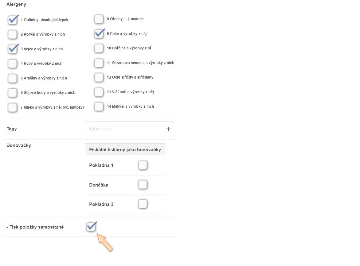 Nastavení doporučujeme aplikovat pouze na hlavní jídla, resp. kategorie. Nastavení neaplikujte na karty, nebo na kategorie přídavků a vazeb.