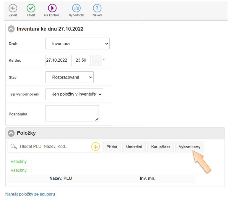- Uložit - uložit inventuru pro pozdější zpracování.