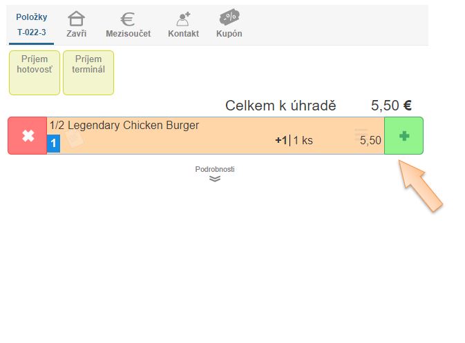 - Pro zadání polovičního množství klikněte na ikonu 1/2 Porce.