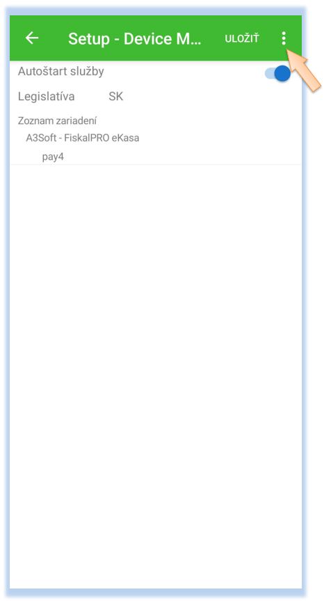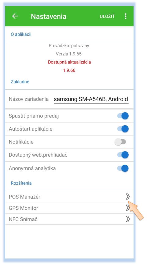 Po úspešnom nakonfigurovaní skenera je potrebné ho nadefinovať v samotnej aplikácii POS Mobile.
