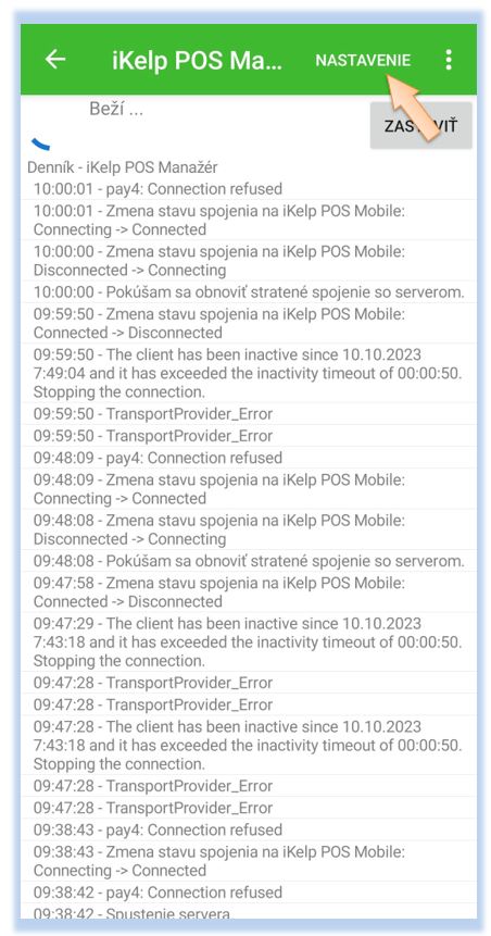 1. Spustite aplikáciu POS Mobile na zariadení so systémom Android.