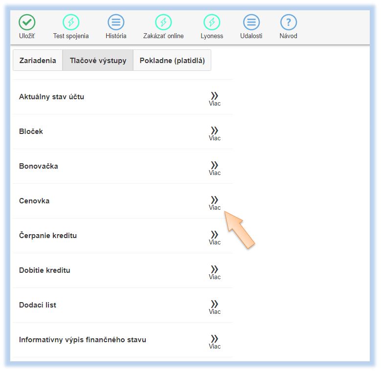 3. Vyberte v zozname Cenovka a kliknite na Viac.