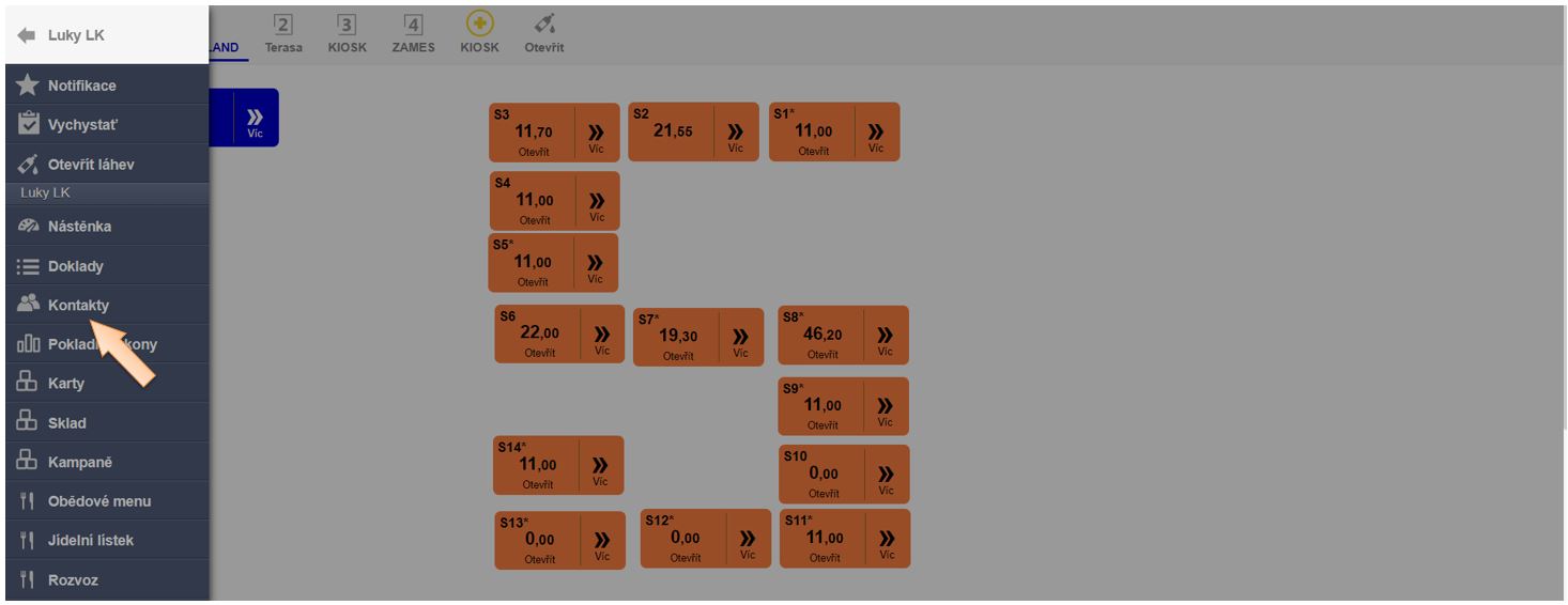 1. Klepněte v menu na Kontakty.
