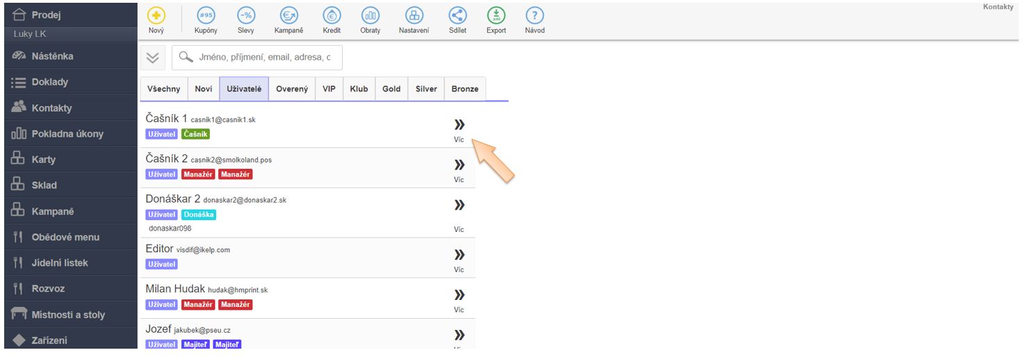 2. Vyhledejte uživatele, kterému chcete právo definovat a klikněte na Více.