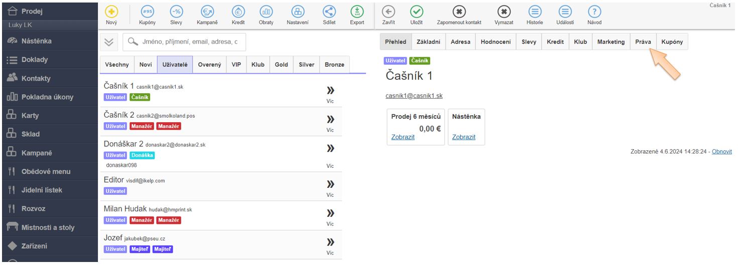 3. Přejděte do záložky Práva.