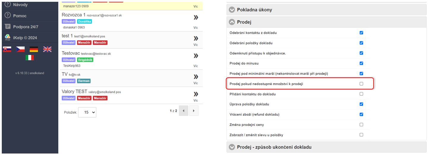 • Pokud uživatel má mít právo pro prodej i po vyčerpání množství, je třeba nastavení aktivovat. V opačném případě právo uživateli odeberte.