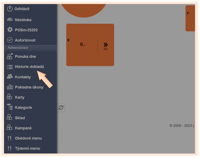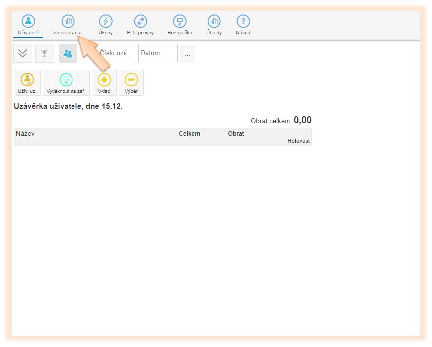 1. Klikněte v menu aplikace na Pokladní úkony.