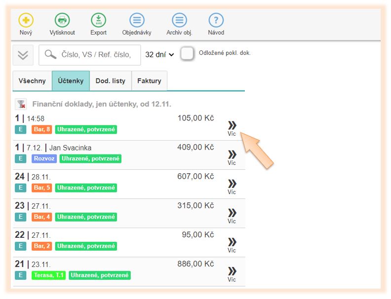 2. Vyhledejte v seznamu doklad a klikněte na Více, následně Upravit.
