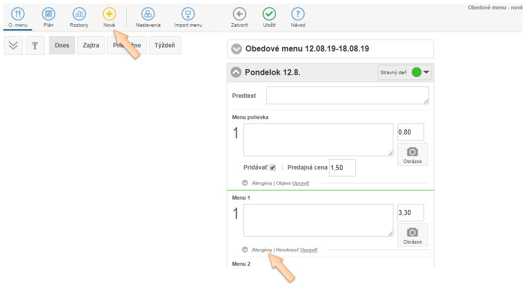 - Z ponuky vyberte možnosť Obedové menu.