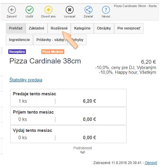 - Alergény sa definujú v záložke Rozšírené výberom zo zoznamu. (Na jednej karte je možné definovať aj viac alergénov.)