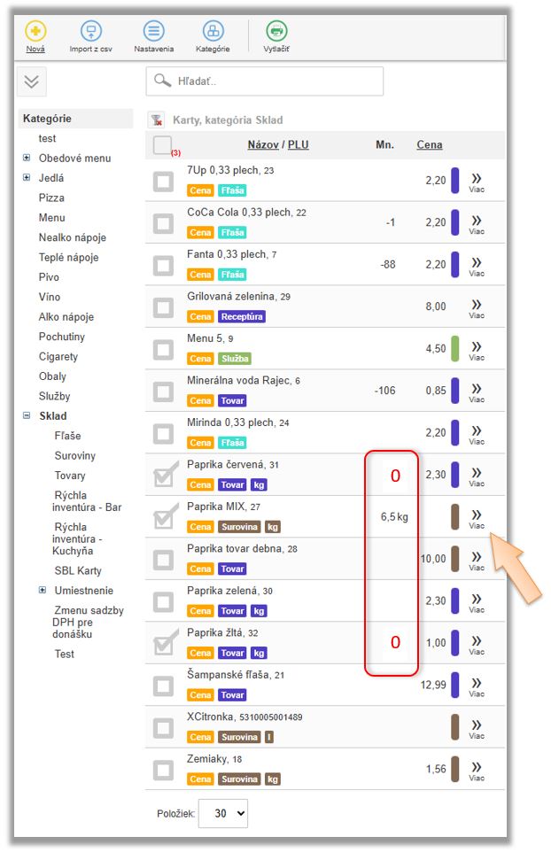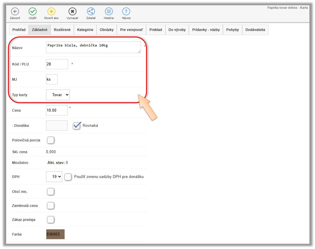 Tento scenár evidencie znovu opíšeme na príklade papriky. Dodávateľ na doklade účtuje papriku ako 1ks - Paprika biela debnička 10kg, ale aby systém vedel správne odpisovať surovinu definovanú v receptúrach, potrebujete to prijať rovno ako paprika biela 10kg. V tomto prípade sa tovar naskladňuje a eviduje na sklade v inej mernej jednotke a v inom počte ako je na doklade od dodávateľa.