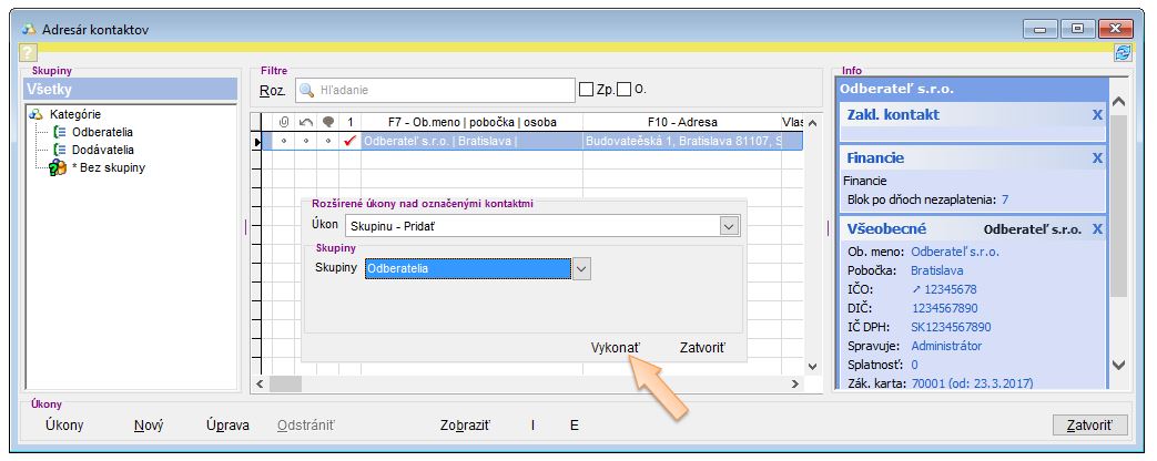 - Zaradenie do skupiny potvrdíte kliknutím na tlačidlo Vykonať.