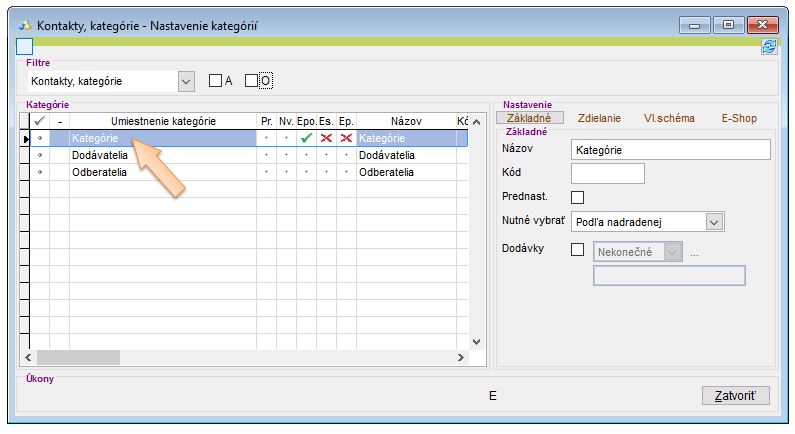 - Následne zo zobrazenej ponuky vyberte možnosť Kategórie - Kontakty.
