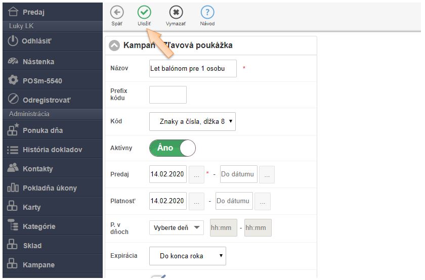- Po predaji poukazu sa automaticky v danej kampani vygeneruje poukaz s kódom.