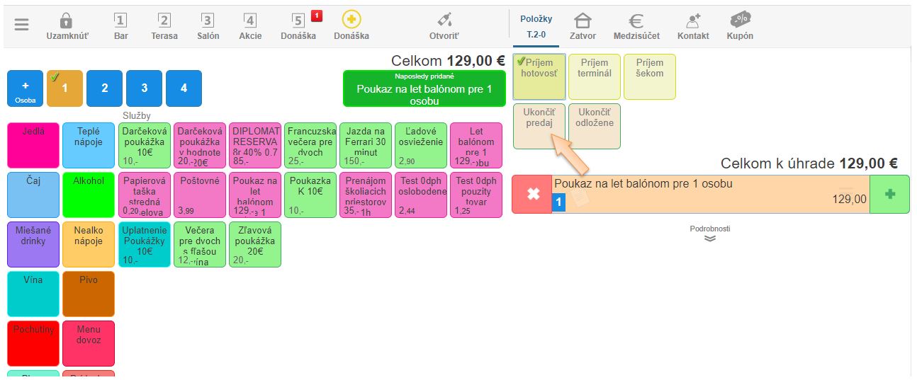 - Ukončite doklad príslušným platidlom.