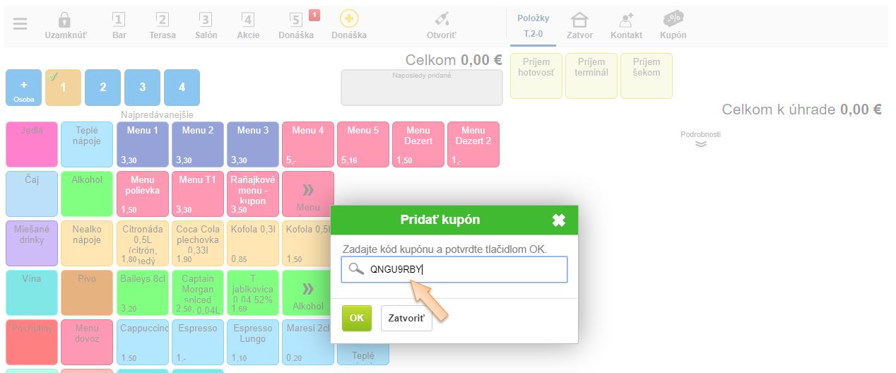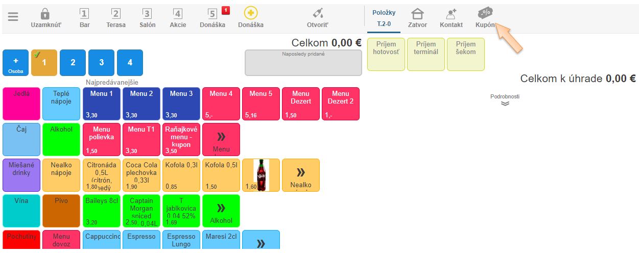 - V predaji kliknite na možnosť Kupón.