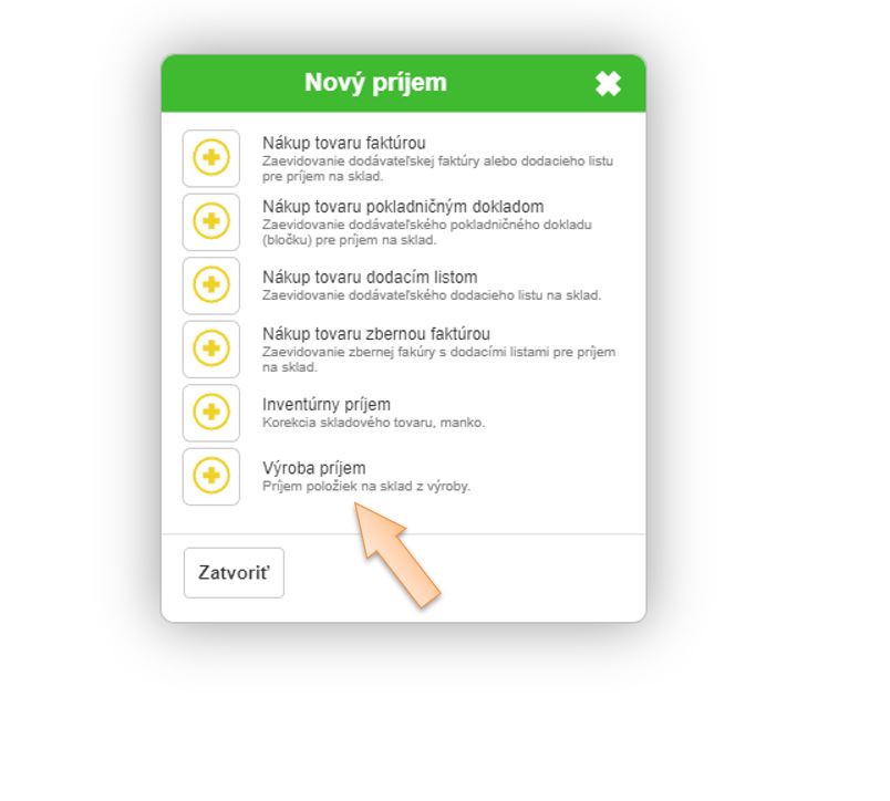- Vyberte typ Výroba príjem.