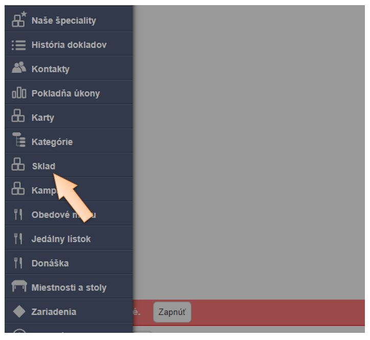 - Kliknite na možnosť Sklad v menu aplikácie.