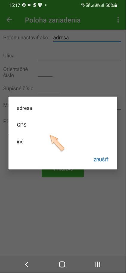 - Iné - textový popis polohy (napr. evidenčné číslo vozidla).