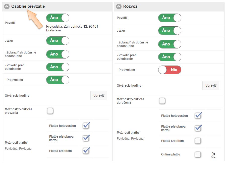 - V časti Osobné prevzatie je potrebné nadefinovať:
