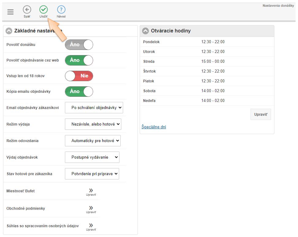 - Kliknite na miestnosť Donáška. (Miestnosť je možné si premenovať podľa potreby, napr. na Bufet.)
