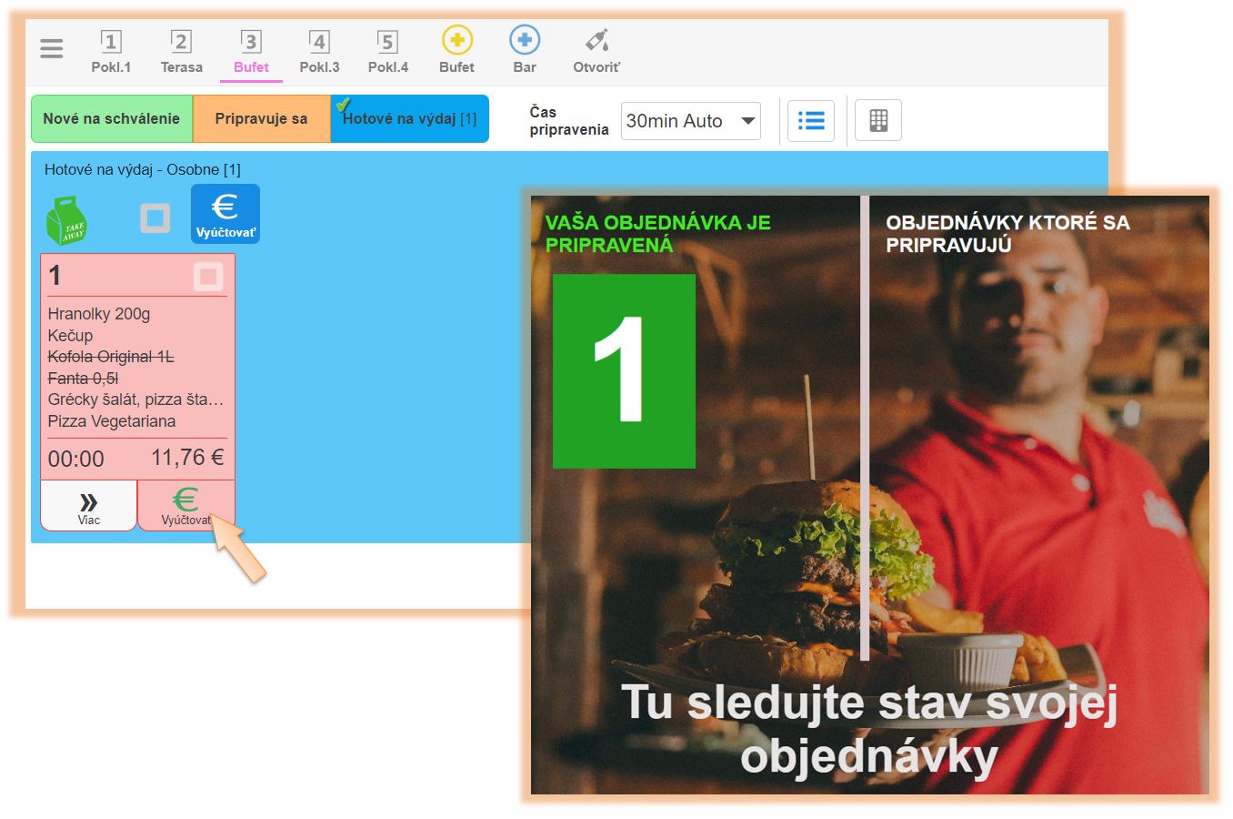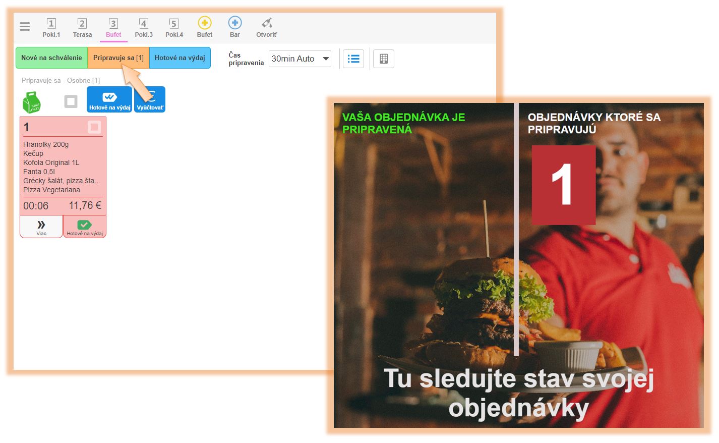- Objednávka na displeji prechádza do časti Pripravuje sa.