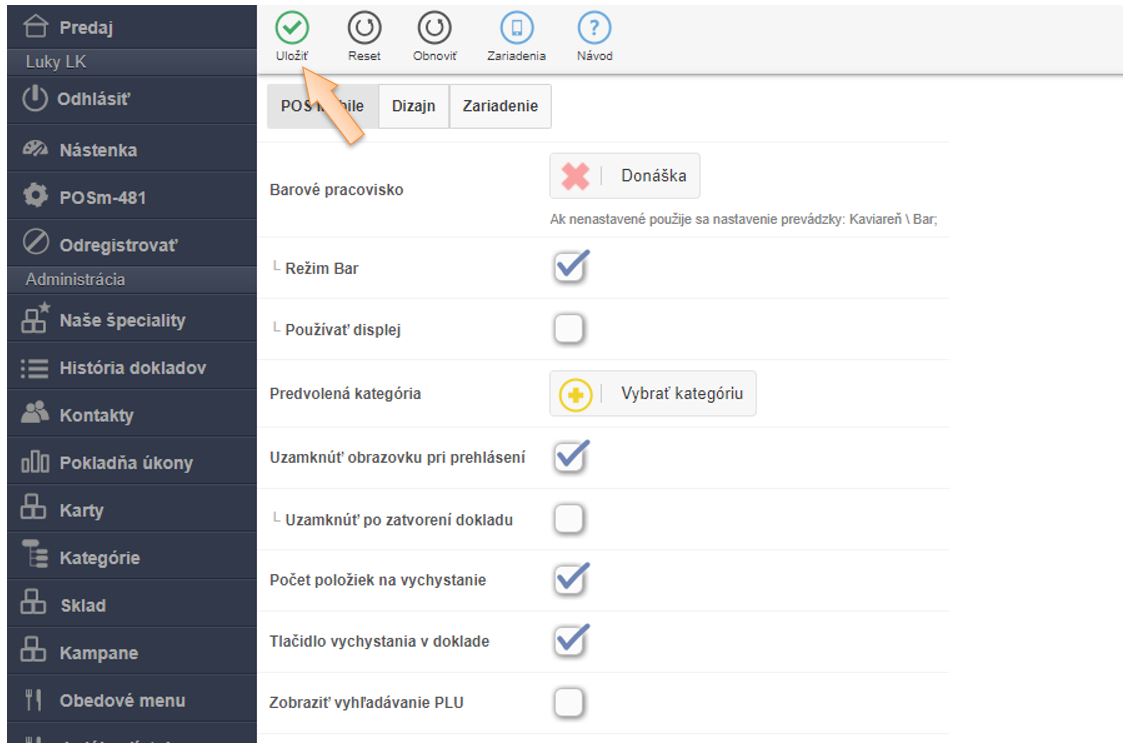 - V menu aplikácie kliknite na nastavenia zariadenia POSm - ...