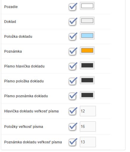 - Písmo hlavička dokladu - farba písma hlavičky dokladu.