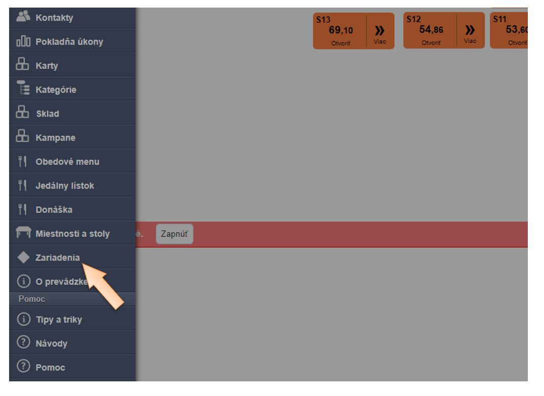 - Kliknite v menu aplikácie na možnosť Zariadenia.