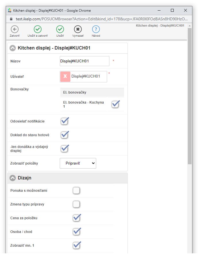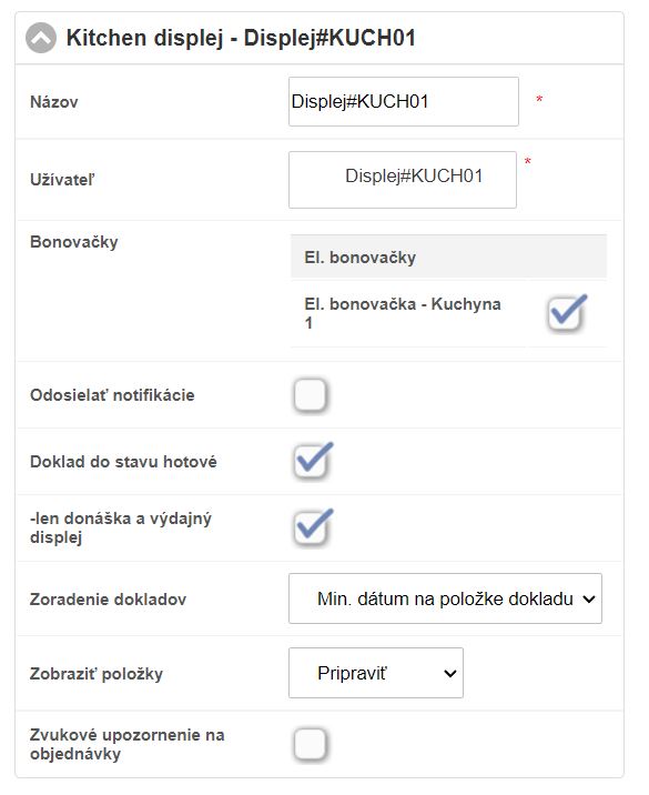 - V záložke Zariadenia, časť Kitchen displeje vyberte zariadenie ktoré chcete nastaviť.