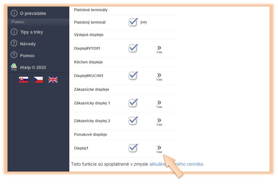 Ponukový displej - nastavenia