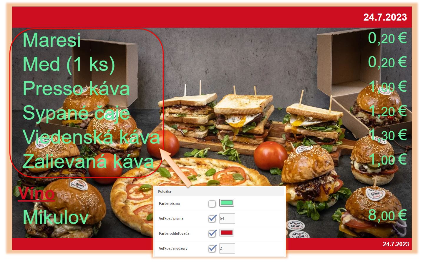 V tomto návode sa nachádza popis jednotlivých nastavení ponukového displeja v aplikácii iKelp POS Mobile. Nakoľko je ako zobrazovacie zariadenie možné použiť externý monitor, alebo napr. smart TV, prípadne akýkoľvek TV s android boxom, je jednoducho možné si nastavenia plne prispôsobiť vlastným potrebám. Či už veľkosťou písma, obrázkom pozadia alebo farbou jednotilivých textov. Zobrazenie je možné plne prispôsobiť štýlu každej prevádzky. Rovnako tak odporúčame prispôsobiť aj farbu písma prípadnému pozadiu, aby text bol dostatočne výrazný.