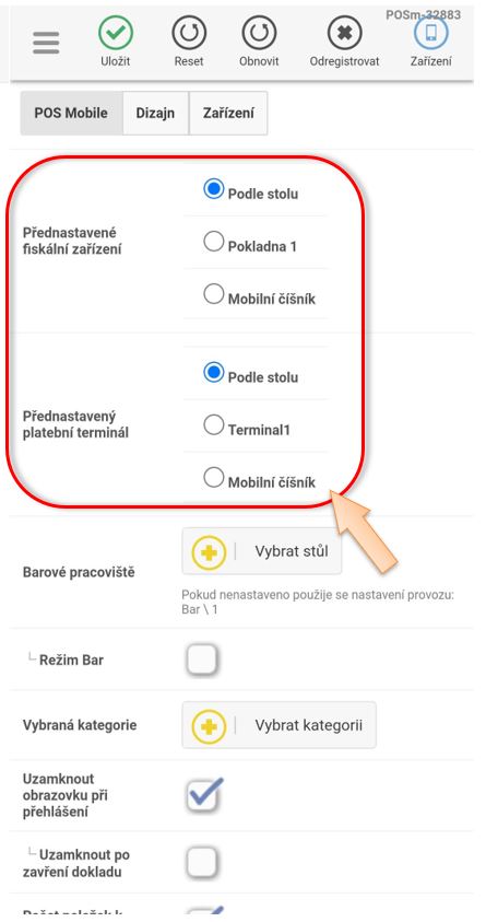 - Pozor, nezávisle sa nastavuje prednastavená účtenková tlačiareň a platobný terminál.
