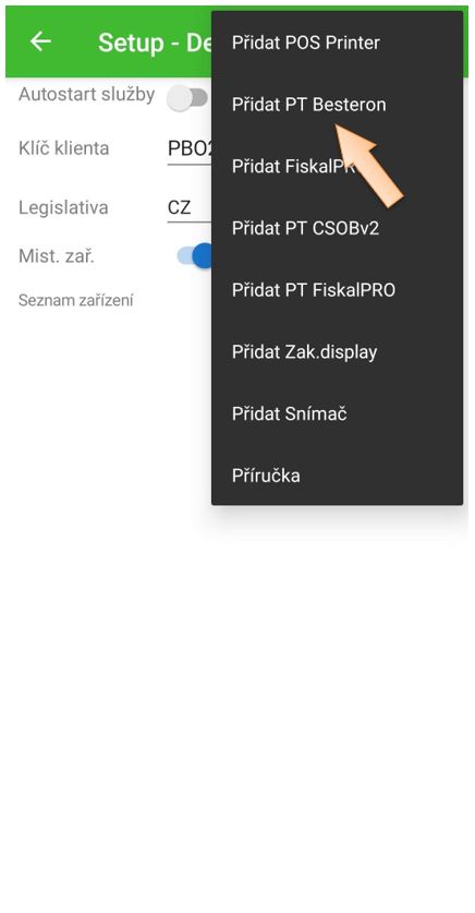 - Vyberte zo zoznamu Pridať PT Besteron / P3Pay.