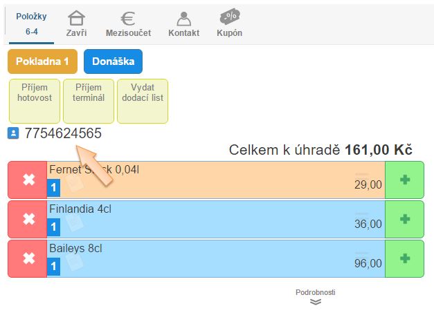 - Ak sa zákaznícka karta nachádza v databáze, aplikácia kontakt automaticky vyberie a priradí ho na doklad.