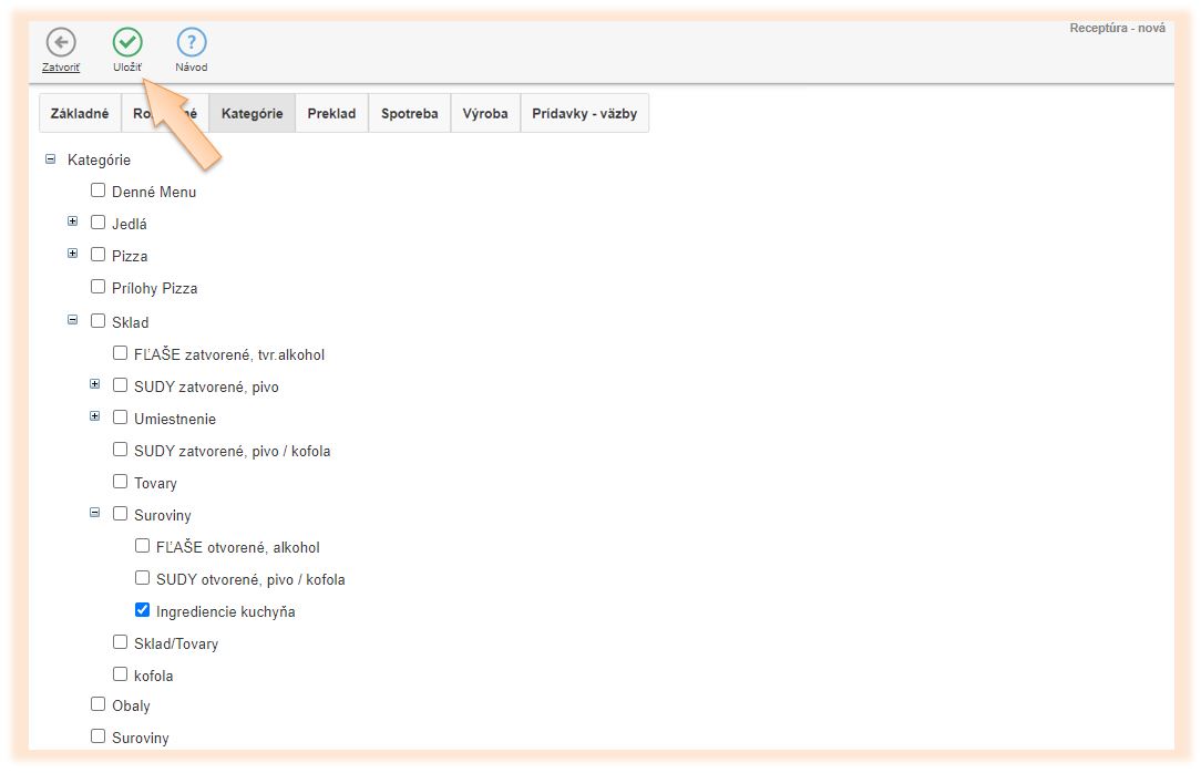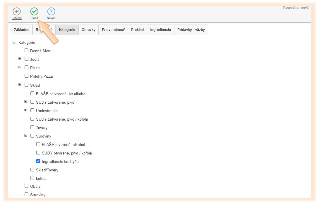 - V záložke Kategórie vyberte kategóriu Sklad.