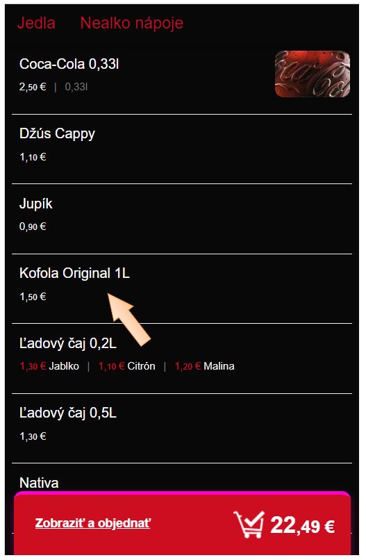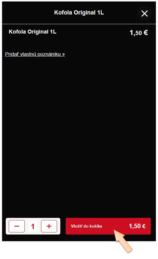 - V časti Tovary / Služby vyhľadajte kartu Kofola Original 1L.